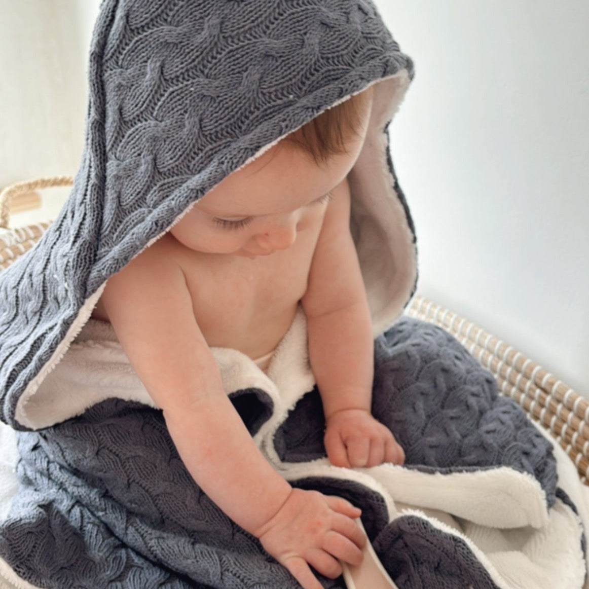 De badcape is voorzien van een capuchon die je om het hoofdje van je baby kan doen waardoor ze lekker warm blijven tijdens het afdrogen. Het ruime formaat van 85cm x 85cm zorgt ervoor dat je kleintje volledig ingewikkeld kan worden en zo geen warmte verliest.