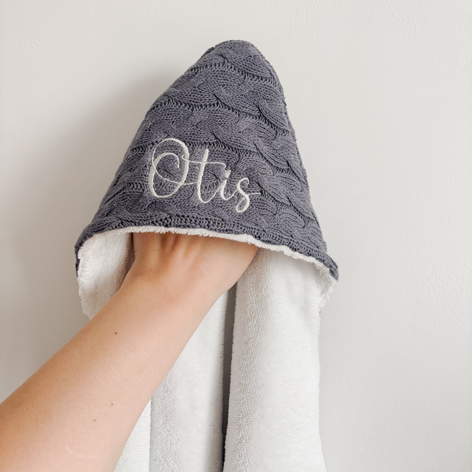 Je hebt ook de mogelijkheid om de badcape te personaliseren. Kies de gewenste naam, lettertype en borduurgaren. De naam wordt op de capuchon geborduurd.