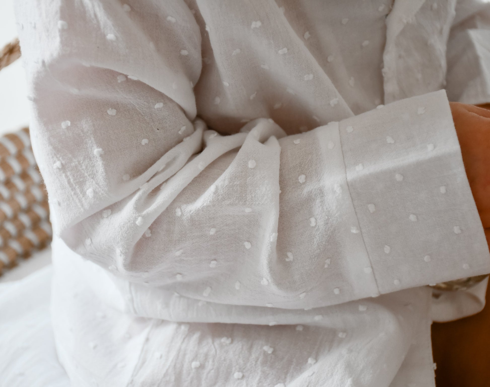 Deze pyjama is handgemaakt en is ideaal voor de warme, zomerse nachten. De naam op de foto is geborduurd met klassiek roze.