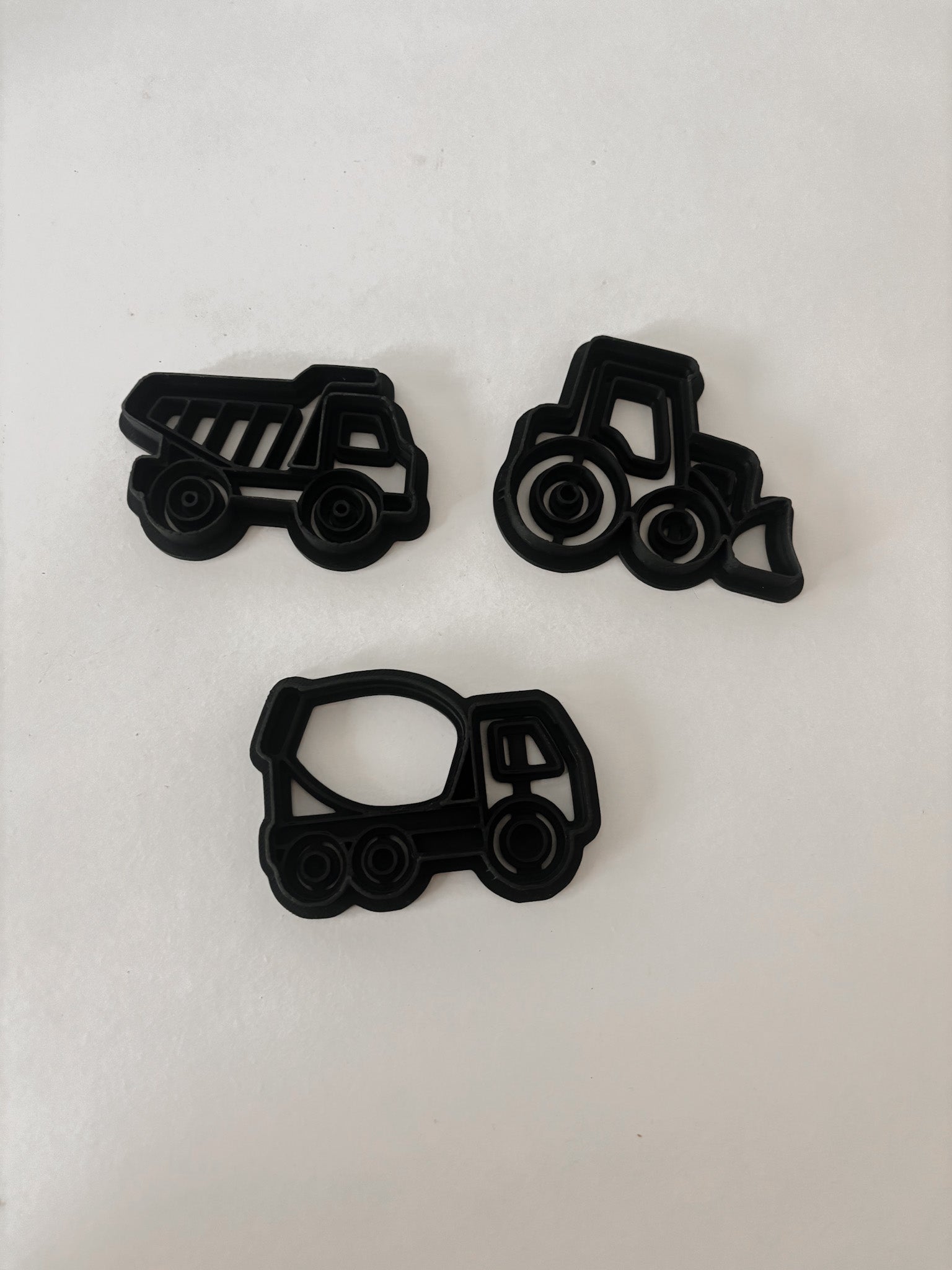 Set van 3 uitsteekvormpjes van bouwvoertuigen. Laat je kindje spelen met klei. Ook geschikt om koekjes mee uit te steken.